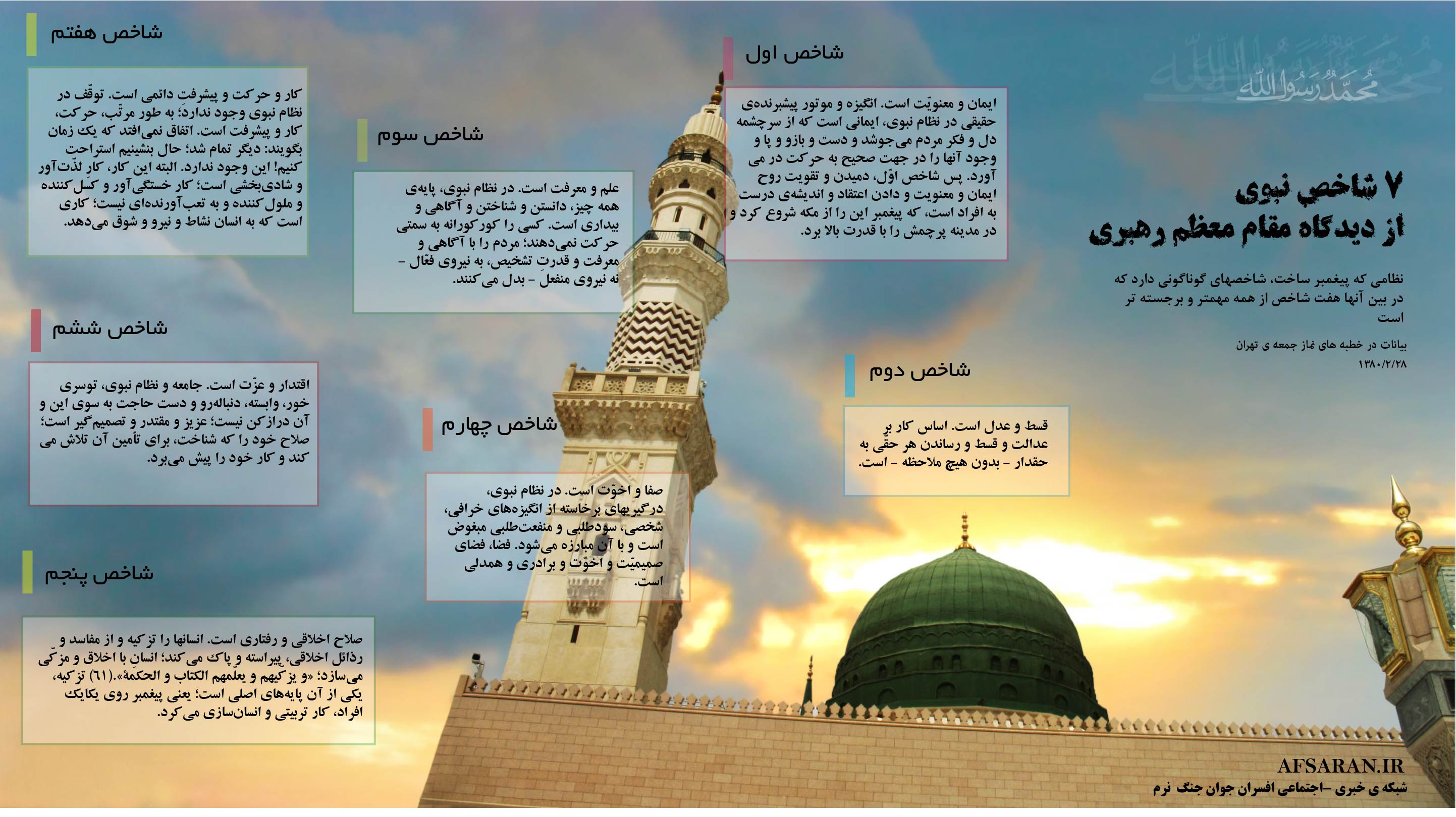 کتابی داشتم  به نام  اخلاق  باید  محمدی باشد(مجموعه ی  باید و نباید  ها از کتب دانشجویی)  ...ورق زدم  ببینم  کدام صفحه  اش  را میشود اینفو ساخت  که  به  بخش 7 شاخص نبوی  اش   رسیدم ...
